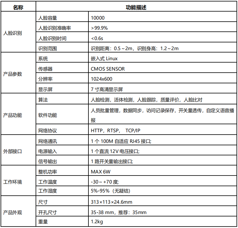 ? 人臉識(shí)別準(zhǔn)確率高達(dá) 99.9%; ? 人臉識(shí)別速度小于 0.6 秒;