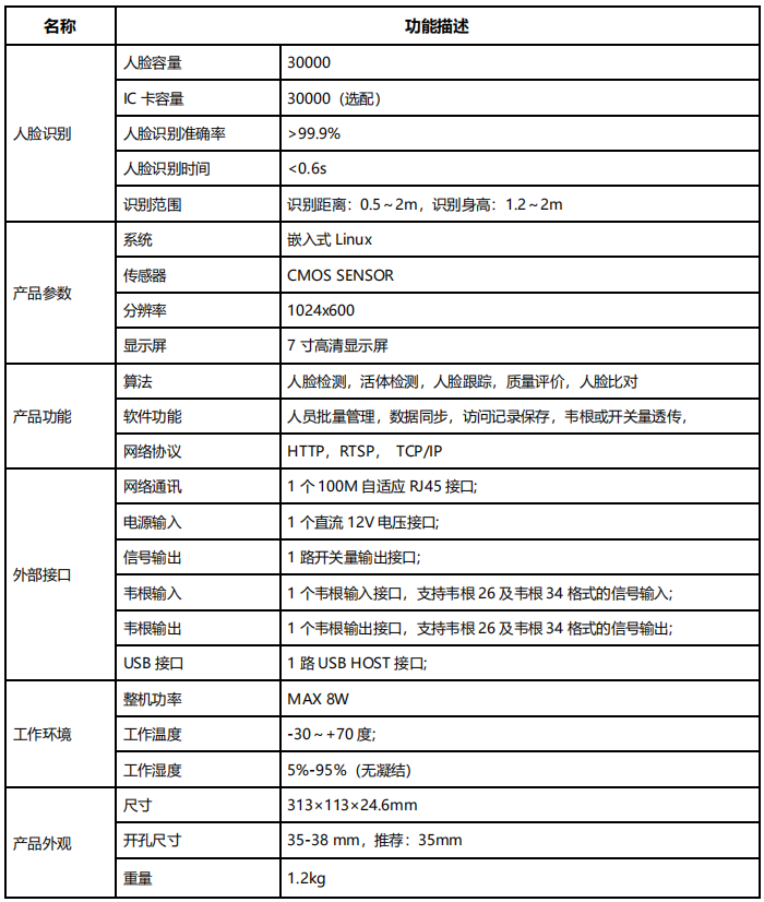 ? 人臉識(shí)別準(zhǔn)確率高達(dá) 99.9%; ? 人臉識(shí)別速度小于 0.6 秒;